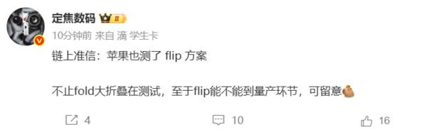 【CNMO科技音问】2月13日,博主“定焦数码”征引供应链音问称,苹果不仅正在测试大折叠iPhone Fold,其翻盖式小折叠决策“Flip”也已参加工程考证阶段,并辅导“至于Flip能弗成到量产材干,可寄望”。