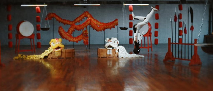 在一个充满新春元素的练功房里,远征A3与深重黑衣东谈主对招,接连完成凌空飞踹、贯穿飞踢、空中散步、摸地旋风等高难度手脚,颇有武林高东谈主的风姿。